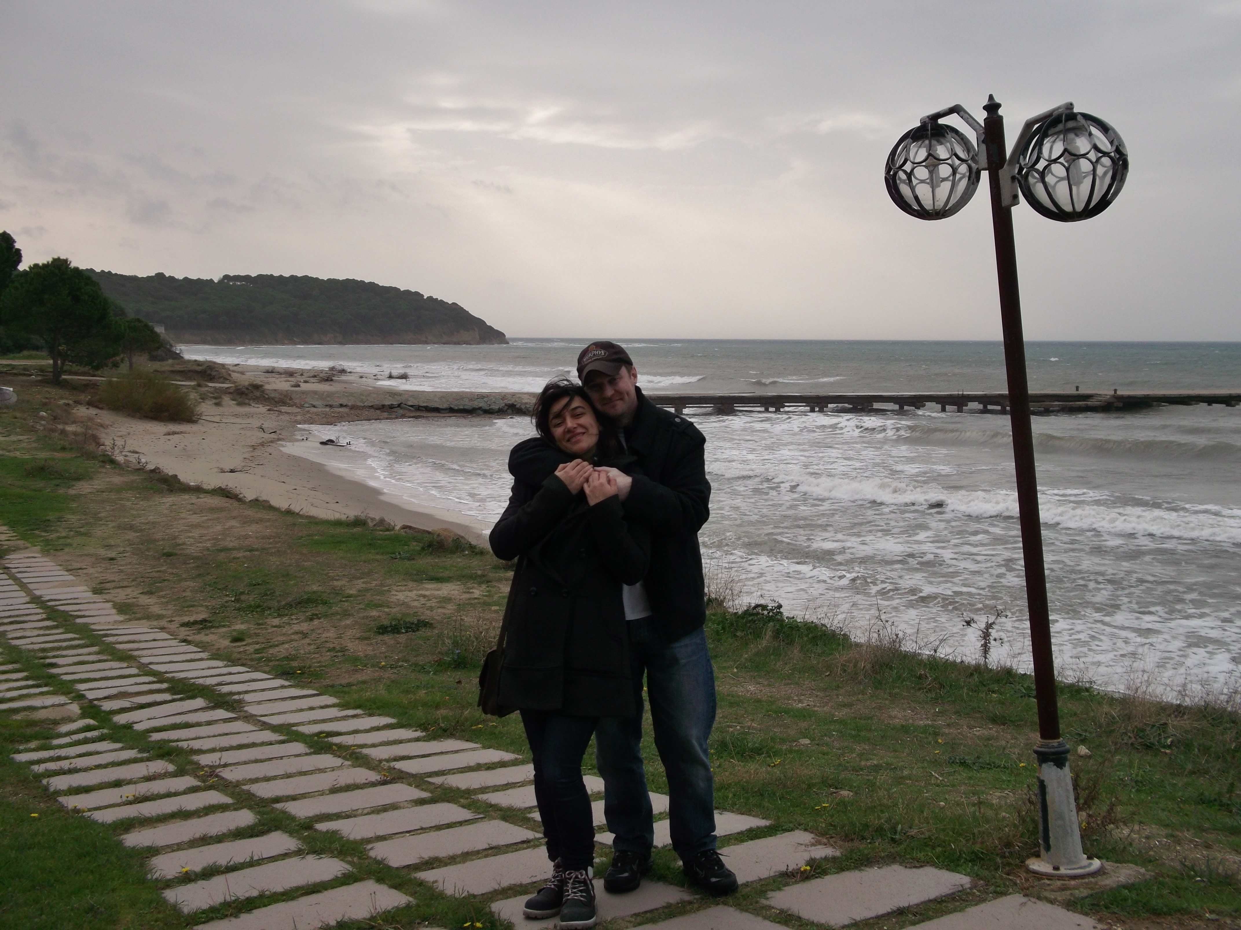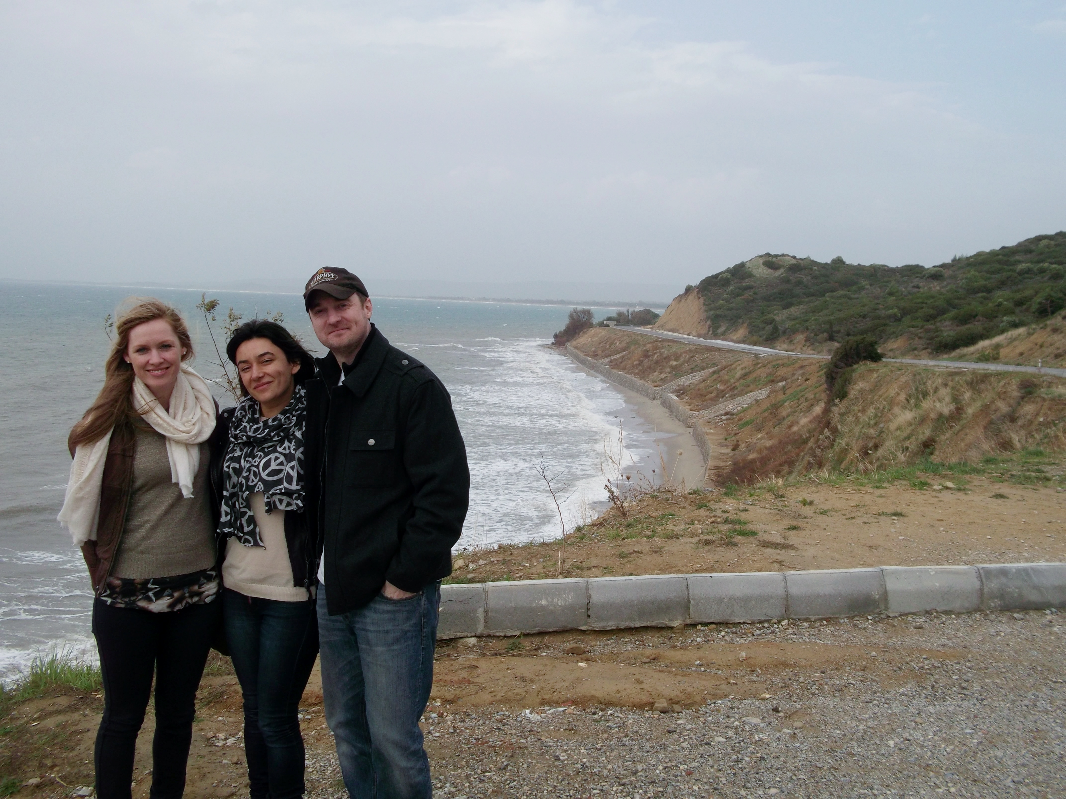 We ate lunch together and then met our tour guide, who spoke virtually non-stop for the entire day, but was filled, as most good guides are, with interesting facts and figures about the battle and battlefield. Here he was nice enough to snap a photo of the three of us at Anzac Cove.